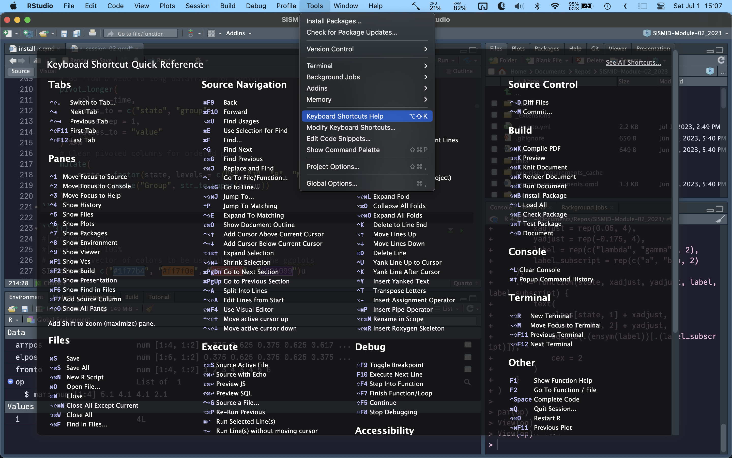There are many shortcuts available to RStudio users, but here are the key ones: